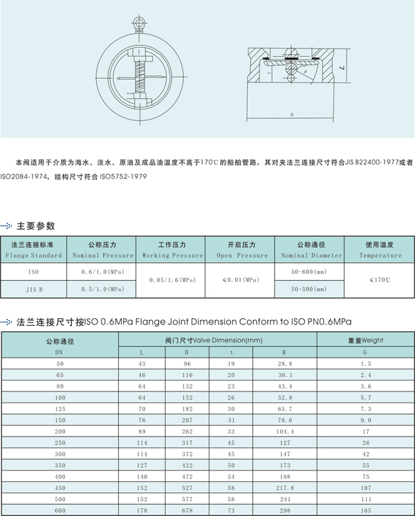 船用不銹鋼蝶型止回閥結構圖與尺寸表