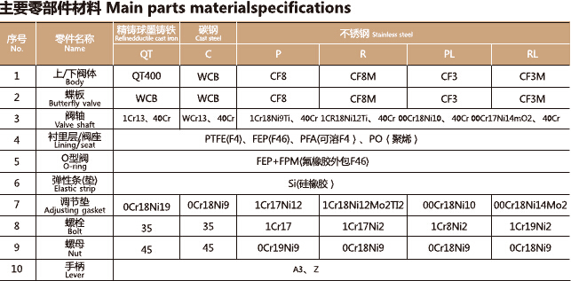 防腐蝕襯氟蝶閥,襯四氟蝶閥,全襯里蝶閥采用對分兩片閥體組合,閥座與閥體內(nèi)襯一體化,閥門工作時,只有全塑閥座與襯塑蝶板與介質(zhì)接觸,產(chǎn)品可承受“除熔融堿金屬和元素氟”外的任何介質(zhì)腐蝕,其中D71F46閥桿與蝶板(鍛)為一體,表面均勻包覆一層FEP。閥體通道內(nèi)表面光滑,流體阻力小,CV值高,流通能力強(qiáng),扭矩適中,采用四級密封結(jié)構(gòu)并在密封面外配以耐溫抗老化的SI橡膠的彈性襯墊閥座,完全達(dá)到介質(zhì)的零泄漏。
