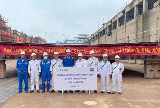 6月18日,由揚州金陵建造的3600噸不銹鋼化學(xué)品6#船如期進塢。船東代表、船級社代表、揚州金陵3600項目負責(zé)人出席了進塢儀式。
