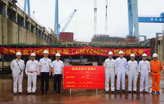 同日,7490噸不銹鋼化學(xué)品船首制船順利進塢,船東代表、揚州海事局代表、CCS船級社代表、揚州金陵7490項目負責(zé)人出席了進塢儀式。