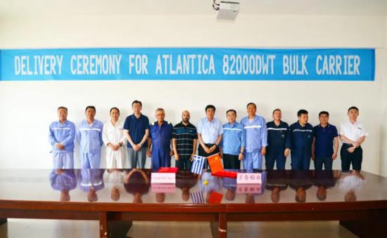 2021年6月23日14時(shí),京魯船業(yè)為Chartworld航運(yùn)公司建造的82000噸散貨船“ATLANTICA”的交船儀式在京魯船業(yè)會(huì)議室舉行。