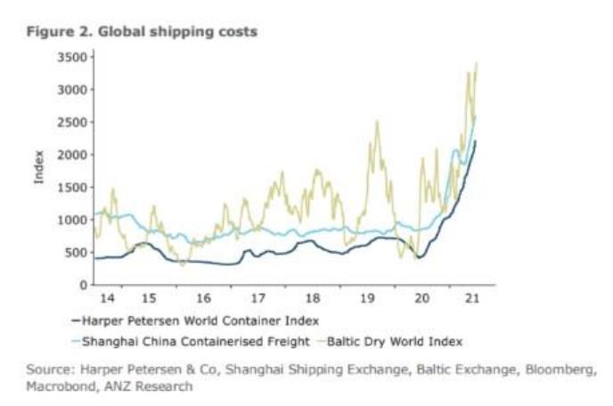 在澳新銀行的報告中,分析師們再次特別提到了飛漲的航運費。