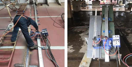 該項(xiàng)焊接工藝的提出,是基于實(shí)現(xiàn)85K散貨船斜底板總組搭載45°對(duì)接焊縫自動(dòng)化焊接的目標(biāo),三部技術(shù)工法部焊接技術(shù)室與搭載部支持作業(yè)區(qū)開展了技術(shù)研究和推廣應(yīng)用攻關(guān)。在此次攻關(guān)過程中,充分利用了兩個(gè)部門人員的專業(yè)優(yōu)勢,從技術(shù)可行性評(píng)估到模擬試驗(yàn),無論是理論上還是生產(chǎn)實(shí)際應(yīng)用上都進(jìn)行了充分的考量,為焊接質(zhì)量和可操作性創(chuàng)造了充分的可行條件。
