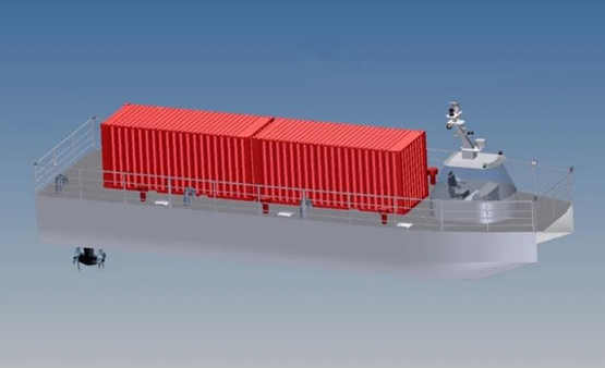 該船總長19.9m,型寬5.5m,設(shè)計吃水0.9m。該無人船設(shè)有2臺200kW全回轉(zhuǎn)主推進器、1臺30kW側(cè)推進器,采用賽思億基于直流組網(wǎng)技術(shù)的S-Hybrid-R混合動力推進系統(tǒng),自動化程度高,系統(tǒng)整體性能好,船上所用船用球閥符合安裝要求,完全滿足無人船使用要求。