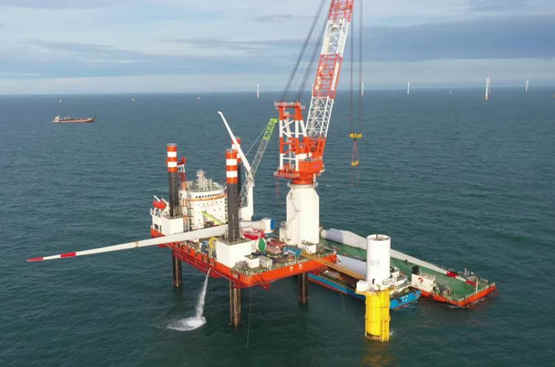 面對(duì)氣候惡劣、海況差、風(fēng)機(jī)設(shè)備產(chǎn)能不足等困難,項(xiàng)目部科學(xué)統(tǒng)籌協(xié)調(diào),不斷優(yōu)化施工方案,克服困難搶抓窗口期,積極組織風(fēng)機(jī)設(shè)備供貨、運(yùn)輸,最終保證了現(xiàn)場(chǎng)施工進(jìn)度。目前,項(xiàng)目部已完成合同內(nèi)基礎(chǔ)沉樁44根,剩余3根;已完成合同內(nèi)風(fēng)機(jī)吊裝34臺(tái),剩余13臺(tái);在保證本項(xiàng)目施工進(jìn)度的同時(shí)還完成合同外基礎(chǔ)沉樁12根、風(fēng)機(jī)吊裝安裝2臺(tái)的業(yè)績(jī)。