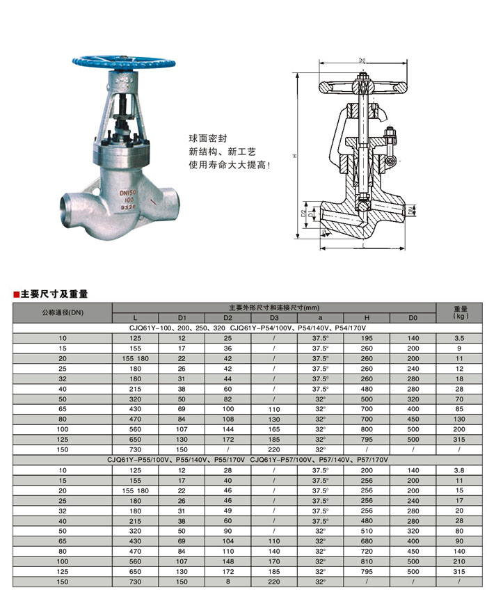 對焊截止閥,高溫高壓對焊截止閥尺寸表