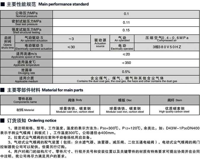 通風(fēng)蝶閥主要技術(shù)參數(shù)