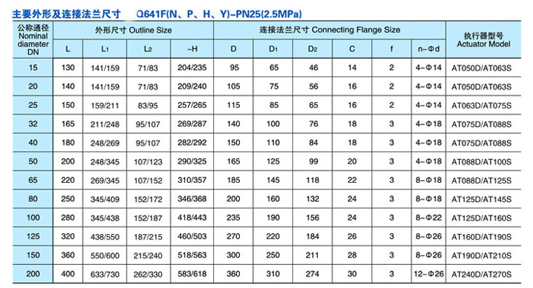 | 公稱壓力 | PN(mpa) | 2.5 | 4.0 | 6.4 |