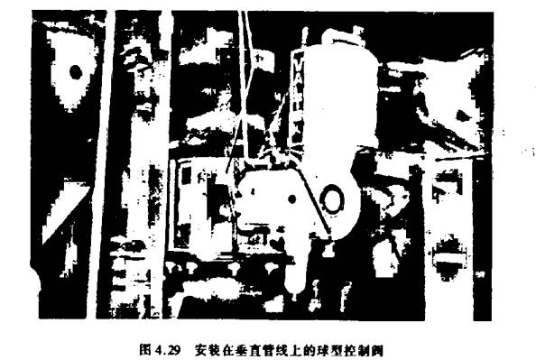 球形控制閥也能很好地適應稀漿工況或含有纖維成分的工藝過程(如木材紙漿)。球形控制閥球體的旋轉(zhuǎn)動作對密封產(chǎn)生剪切動作,在關(guān)閉過程中可使工藝介質(zhì)清潔地分離。相同的工藝在蝶閥或截止閥中(它們直接在工藝物流通道中使用調(diào)節(jié)元件或閥芯)將被阻塞或粘合。與蝶閥結(jié)構(gòu)相似其特征為直線通過流動。球閻可以安裝在垂直管線上(圖4.29)以遵免纖維物質(zhì)或顆粒等物的沉積和損壞。另-方面,截止閥可便工藝介質(zhì)中較重的物質(zhì)沉積在截止閥底部(水平管線安裝)或沉積在閥體工作臺(垂直管線安裝)。
