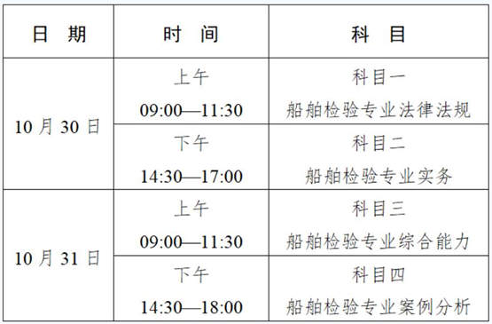 根據(jù)《人力資源社會保障部辦公廳關(guān)于2021年度專業(yè)技術(shù)人員職業(yè)資格考試工作計劃及有關(guān)事項的通知》(人社廳發(fā)〔2021〕4號)要求,2021年度注冊驗船師資格考試(以下簡稱“資格考試”)將于2021年10月30日、31日舉行。現(xiàn)就有關(guān)事項公告如下: