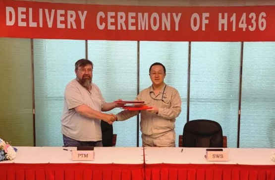 7月22日,中國(guó)船舶集團(tuán)旗下上海外高橋造船有限公司為希臘PTM公司建造的11.4萬(wàn)噸阿芙拉原油輪系列第二艘船“SEA URCHIN”輪簽字交付。PTM監(jiān)造組經(jīng)理Viorel Bran和外高橋造船市場(chǎng)營(yíng)銷(xiāo)部副部長(zhǎng)李輝分別代表雙方簽署交船協(xié)議。