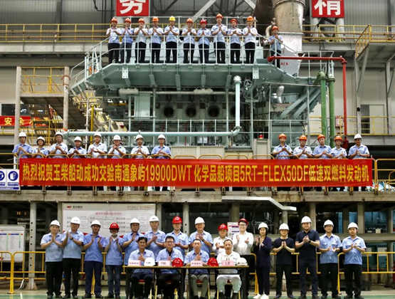 8月3日,玉柴船舶動(dòng)力股份有限公司(簡(jiǎn)稱:玉柴船動(dòng))成功交驗(yàn)?zāi)贤ㄏ髱Z19900DWT化學(xué)品船一臺(tái)5RT-flex50DF低速低壓雙燃料發(fā)動(dòng)機(jī),這也是公司交驗(yàn)的第15臺(tái)低速低壓雙燃料發(fā)動(dòng)機(jī)。該機(jī)入級(jí)LR,將裝配在南通象嶼海洋裝備有限責(zé)任公司(簡(jiǎn)稱:南通象嶼)承接的19900DWT化學(xué)品船上,船東為日本船東Nisshin Shipping,該船東在南通象嶼訂造2條19900DWT化學(xué)品船和4條33000DWT化學(xué)品船,總共6臺(tái)低速低壓雙燃料發(fā)動(dòng)機(jī)均由玉柴船動(dòng)制造。