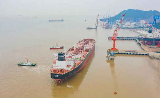 當日下午16時,“STIRLING”輪移錨離廠,投入首航運營。這是舟山中遠海運重工新造船首次實現(xiàn)當天交付、當天開航。